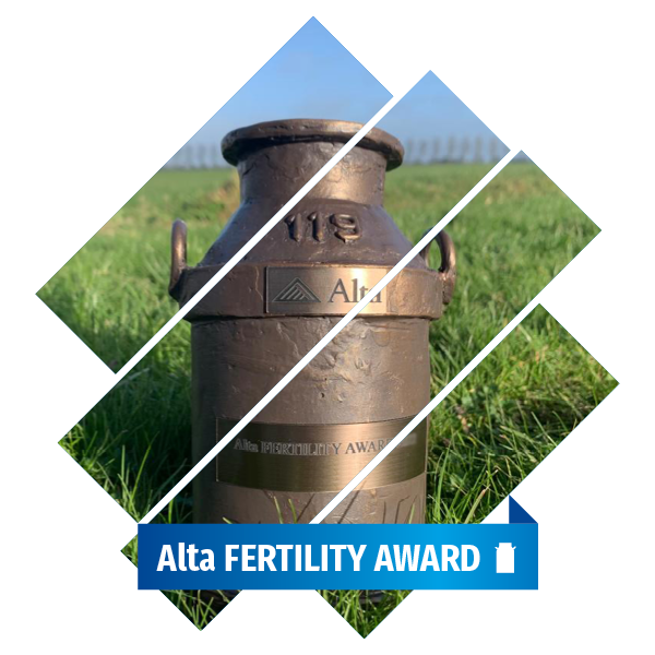 Een goede vruchtbaarheid is één van de belangrijkste aanjagers voor de winstgevendheid van melkveebedrijven. Afgelopen jaren hebben wij 3 maal de Alta FERTILITY AWARD mogen uitreiken aan bedrijven met een aantoonbare hoge vruchtbaarheid of een effectieve verbetering in de vruchtbaarheidscijfers. Afgelopen jaren ging de Award naar de families Thewissen, Franken en Katerberg. De Preg Rate op deze bedrijven lag rond de 30% in het jaar dat zij de Award ontvingen.