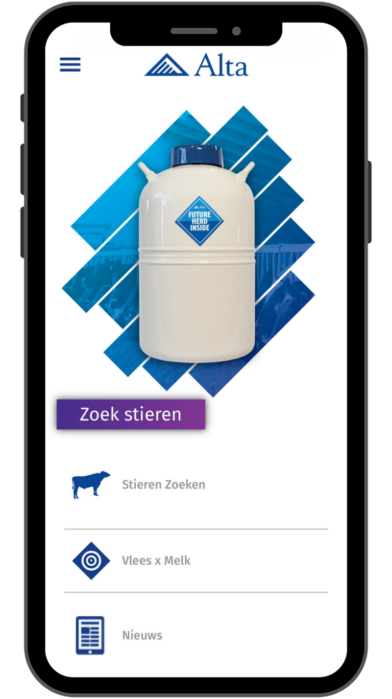 De Alta Bull Search app is de enige app waar je details over alle stieren kunt vinden, van zowel Alta stieren als andere stieren in de rassen Holstein, Jersey, Brown Swiss en crossbred stieren.